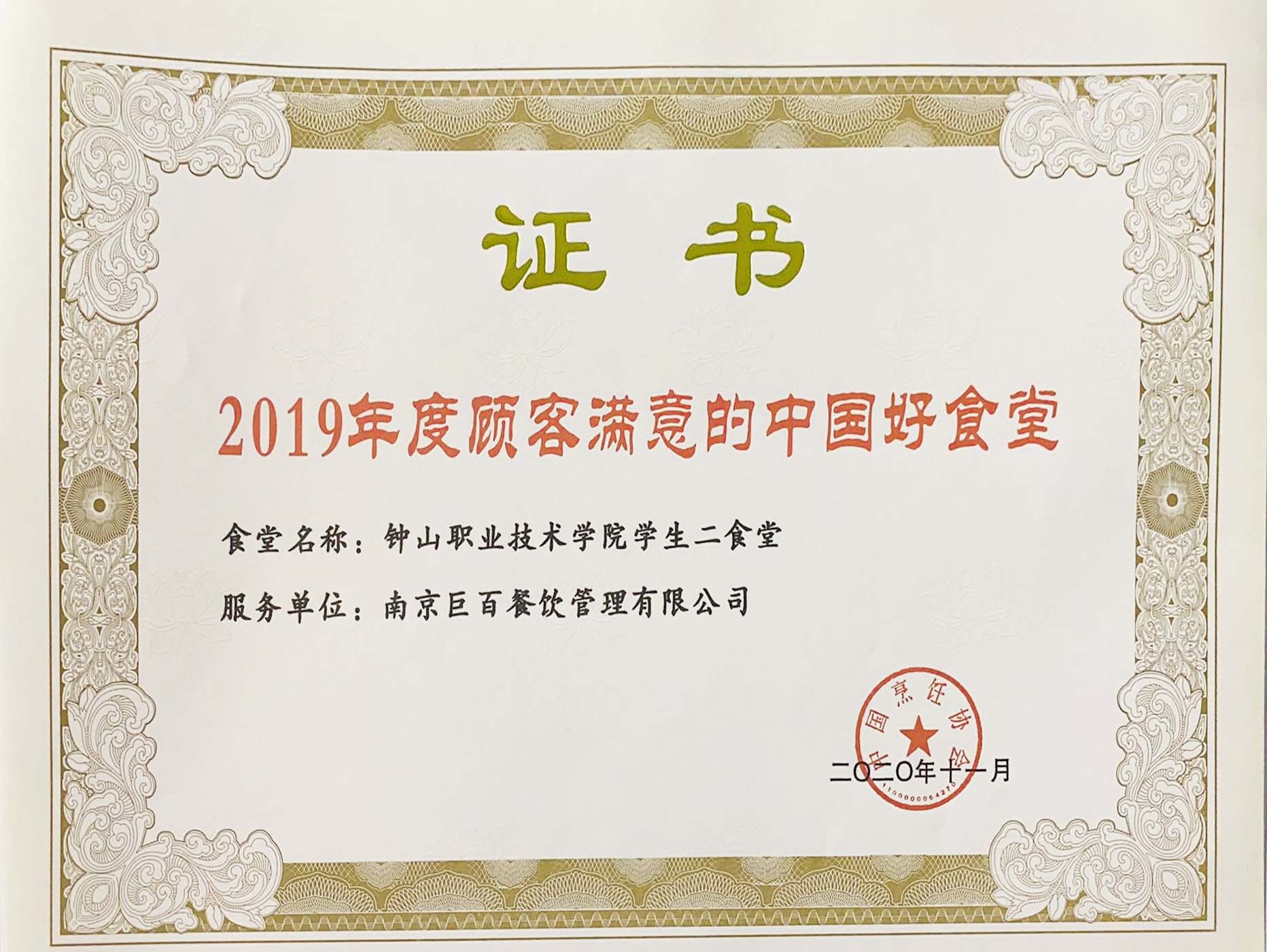 • 2019年度顧客滿意的中國好食堂